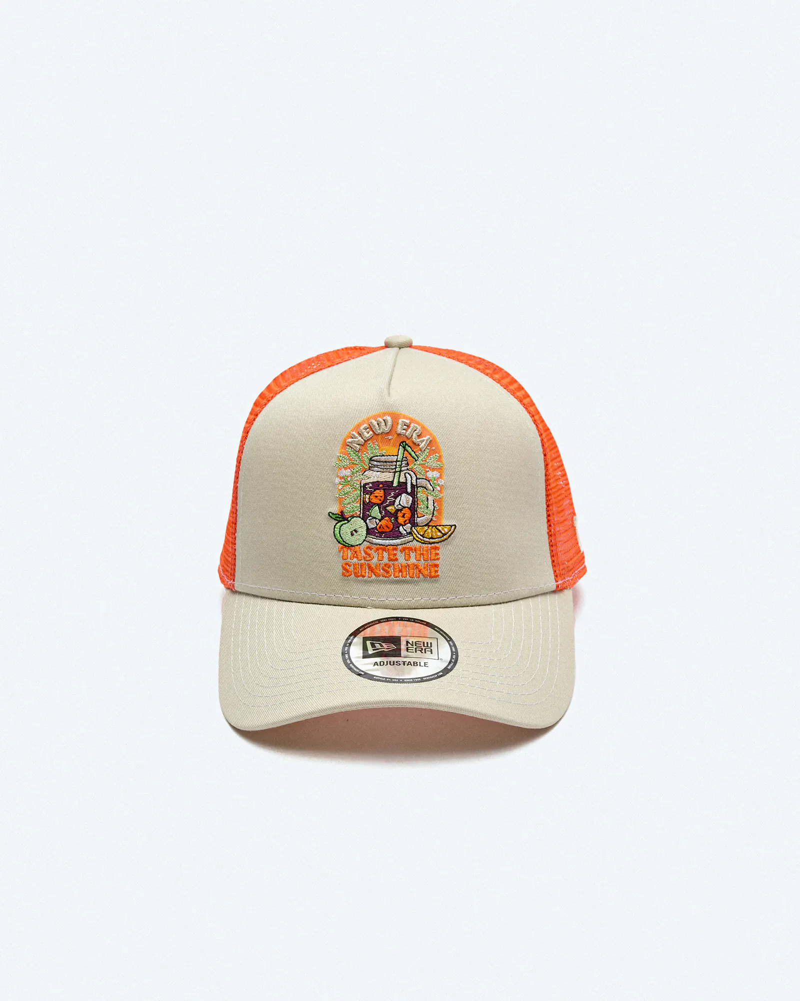 Die New Era Summer Patch Trucker Cap in Stone/Orange kombiniert trendiges Design mit hoher Funktionalität. Das auffällige Patch-Logo auf der Front und die Farbgebung in Stone und Orange machen diese Kappe zu einem echten Hingucker.